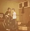 ”Här uppträder min ungdomskompis Johan Ulvesson och jag på en ungdomsgård i en söderförort. Vi hade en liten kabarépopgrupp som hette “Nya Orkestern” och inom den duon “Ukulelepojkarna”. Ingendera kan sägas lämnade något varaktigt minne efter sig i svenskt musikliv.” Foto: Privat