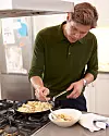 – Nej, jag tröttnar inte! Där­emot är det stor skillnad på krogmaten och det jag lagar hemma. I mitt eget kök gör jag det jag känner för, utan att krångla till det. Jag vill inte stå vid spisen i flera timmar utan satsar på bra råvaror som ”sköter sig själva”. Allt från ugnspannkaka till blodpudding, eller nudlar med olika tillbehör. Vi tycker om att servera saker i olika skålar – broccoli, kyckling, olika såser och röror, sedan väljer var och en själv.