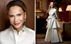 Hon gör entré som det anstår en äkta Hollywoodstjärna. När Lena Olin efter en stunds väntan uppenbarar sig i Hotel Diplomats bibliotek gör hon det i en specialdesignad, drottninglik kreation i gräddvit sidenduchesse.