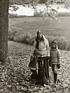 1974. ”Med Mamma, storasyster Sara och vår hund Charlie i Tyresö Slottspark 1974.” Foto: Privat
