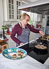 – Jag älskar att laga mat tillsammans med andra. Jag har samlat recept sedan jag var väldigt ung och har ärvt mammas pärm. Och jag har hur mycket kokböcker som helst. Jag får en ny i julklapp varje år av min bonusdotter Cornelia. Jag läser dem som porr.