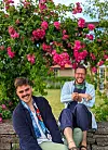 Marcus tillsammans med sambon Matthew på Capellagården på Öland. Marcus hoppas att hans böcker så småningom översätts till engelska så att Matthew och hans familj kan få läsa dem. Foto: Privat