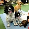 Christina i rehabsalen på Fröet med fem av sju hundar. Här sitter Boy, Etta, Mary, Tina och Solo. Tina är kelgrisen, hon älskar att gosa. Boy är en clown som får alla att skratta. Varje hund har sina egenskaper.