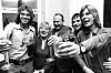 Clabbe af Geijerstam och Göran Fristorp firar segern i Melodifestivalen 1973 med Carl-Axel och Monica (musik) och Lars Forssell (text). Foto: TT