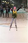 Triumfen! Ninni går i mål efter sitt första Vasalopp, år 2020. Tidigare hade hon åkt sträckan i Öppet spår. Foto: Privat
