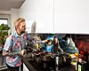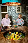 På väggen hänger en Mona Lisa, på skänken tronar ett pampigt rymdskepp och i vasen står en blombukett. Bara det att alltsammans är byggt av lego. Och istället för kakel i köket har paret valt färgstarka motiv ur ”Sagan om ringen” som placerats bakom en skyddande glasskiva.