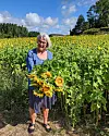 Väg 210 i Östergötland är en riktig semesterväg. Den leder ut till campingplatser, bad och sommarstugor i Sankt Annas skärgård. Men vid ett fält med mängder av solrosor har Annika Hassel stannat sin bil. Här erbjuder nämligen Melby gård självplockning av den somriga glädjespridaren.