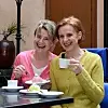 Fnissiga systrar med prinsessbakelser. Skådespelerskorna Stina och Ylva Ekblad njuter ofta av långa konditoribesök.