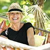 Tina älskar att påta i trädgården och läsa i hängmattan.
