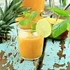 Mixa ananas, mango, socker, limesaft och vatten. Smaka av sötman.