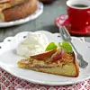 Dela, kärna ur och skär äpplena i tunna klyftor. Fördela klyftorna över smeten och strö över kanel. Grädda i nedre delen av ugnen på 175° i 25 minuter.