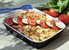 Blanda ner grönsakerna i det färdigkokta riset. Häll allt i en smord ugnssäker form och hyvla över parmesanost. Gratinera mitt i ugnen i ca 10 minuter. Gott med en sallad till.