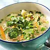 Den här soppan är god med antingen räkor eller kyckling. Eller som här, helt vegetarisk.