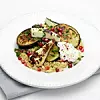 Krydda med salt och peppar och toppa med granatäpple-kärnor och persilja. Servera med en klick yoghurt och strö eventuellt sumac ovanpå.
