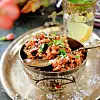 Mixa alla ingredienser. Smaka av med salt och peppar. Låt smakerna mogna innan servering. Servera röran rumstempererad.