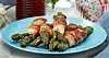 Lägg samman sparrisen två och två i små buntar. Linda en skiva bacon runt varje bunt.