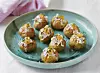 Skär ett kryss i varje potatis och tryck till så att de öppnas lite. Klicka en sked röra i varje potatis och toppa med löjrom.