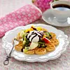 Du behöver Servera med: glass chokladsås fruktsallad Gör så här 1 Gör smeten enligt receptet till äggvåfflor. Mosa bananerna och rör ner i smeten. 2...