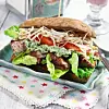Bred lite av örtkrämen på bottendelarna av bröden. Lägg på salladsblad, biff, örtkräm, tomatskivor och groddar. Toppa med övre delen av bröden. Servera gärna en bärsmoothie till.