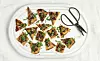 Hacka de soltorkade tomat-erna grovt. Bred tapenade och strö tomater på bottnen. Strö över ost och grädda pizzan i 5 minuter till. Skär upp i små plockvänliga bitar och strö över strimlad basilika. Servera ljumma.