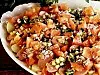 Skaka ihop allt till dressingen i glasburk med skruvlock och häll över salladen, att äta med grovt brytbröd till.