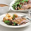 Bjud hem vänner eller familj på middag med stek, sås och rostade rotfrukter och potatis. Frästa baconchampinjoner, haricots verts och en klick gelé blir läckra tillbehör.