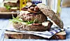 Grilla eller stek burgarna 3 minuter per sida. Lägg på osten mot slutet, låt den smälta.