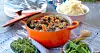 4. Koka i ca 30 minuter tills köttet är mört. Smaka av med salt och peppar. Red eventuellt av grytan med majsstärkelse utrörd i lite vatten. Servera med potatispuré och haricots verts.