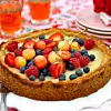 Häll i formen och grädda i 30 minuter. Stäng av ugnen och låt kakan stå kvar i 30 minuter. Låt kallna och garnera med bär.