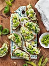 Chèvrecrostini med edamameröra