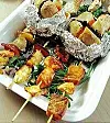 Trä upp fiskbitar och skaldjur på spett. Grilla i ugn eller på träkolsgrill på väloljat galler eller i halster. Kan även stekas i panna.