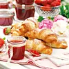 Grädda i ca 10 minuter. Serveras nygräddade tillsammans med jordgubbsmarmelad.