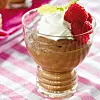 Vänd ner resten av grädden och äggvitorna. Fördela i serveringsglas och låt stå kallt i 1 timme. Garnera med grädde och bär.