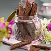 Dela degen i fyra bitar och rulla ut bitarna längder som är lika långa som plåtens långsida. Lägg längderna på en plåt med bakplåtspapper och platta till dem lätt. Grädda mitt i ugnen, 20 minuter. Skär de varma längderna i sneda snitt.