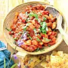 Kryddig korv, spiskummin och paprika är goda smaksättare i köttfärsgrytan. Eftersom grytan innehåller bönor räcker det att servera den tillsammans med en fräsch avokadoyoghurt. Men en grönsallad är förstås alltid rätt att komplettera med.