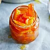 Gör marmeladprov under koktiden genom att ta lite marmelad och lägga på ett fat. Om det går att göra ett spår i maremeladen som inte flyter ihop är marmeladen klar. Rör om lite då och då så att marmeladen inte bränner i botten.