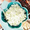 Du behöver Gör så här Strimla äpplet och ski­va kålen fint på mandolin eller med en osthyvel. Skölj och strimla purjolöken. Blanda ihop med övriga...