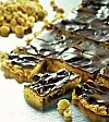 Smält blockchoklad i vattenbad eller i mikrovågsugn. Bred ut chokladen över kakan och låt stelna. Skär kakan i bitar.
