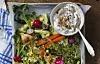 Servera ricottakräm med valnötter till couscous med varma grönsaker.