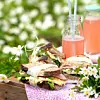 Bred färskost på brödskivorna. Lägg på sallad, skinka, äggsallad, sparris och skinka igen på två av brödskivorna. Lägg på de andra brödskivorna och tryck till. Dela på mitten och linda in i smörpapper.