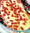 7. Gratinera i 275 graders ugnsvärme tills rätten fått färg. Kärna ur och skär paprikan i småsmå bitar. Strö paprikahacket över såsen på falukorvsskivorna.