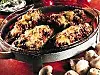 Halvera auberginerna, gröp ur innehållet och skär det i mindre bitar. Fräs det i olja tillsammans med lök, färs och champinjoner. Tillsätt krossade tomater, kalvfond, Sambal Oelek och paprika. Låt allt koka ihop några minuter.