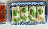 Gör likadant med resten av rullarna. Servera dem kalla, hela eller skurna rakt av med en vass sköljd kniv. Skeda över dressingen, eller doppa rullarna i den eller i sweet chilisås