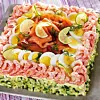 Lax och skaldjur är alltid fest. Här är en extra stor tårta som räcker till många.