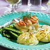 Fiskgratäng med kräftsås och gratinerade potatisrosor