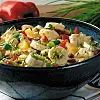 Tillsätt fisk, paprika, ananas och skivad banan. Låt det sjuda under lock ca 5-10 minuter. Smaka av med salt, peppar och paprikapulver. Strö över hackad gräslök. Kokt ris är gott till.