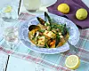 Lägg i musslor, lax och purjolök och sjud under lock i ca 5 minuter. Blanda avrunna kräftstjärtar och dill och strö över soppan.