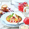 Skala räkorna. Vänd ner hackad basilika och dill i soppan. Lägg upp fisk och räkor i djupa tallrikar. Häll på soppa och servera med aioli. Rostad baguette med olivolja och flingsalt är gott till soppan.