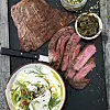 Tina tipsar: Du kan också snabbt ge den rumsvarma flanksteken lite stekyta i en stekpanna och sedan steka den i 200 graders ugnsvärme tills den har en innertemperatur på 57 grader.