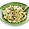 Strö över hackad persilja och hasselnötter och salta lätt. Rör ner pastaskruvarna i stekpannan och blanda. Riv parmesanost över.
